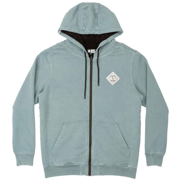 The Shelter Sherpa Fleece is a men’s mid-weight zip hoodie with cotton rich fabrication and sherpa-taffeta lining for enhanced insulation. We kept warmth in mind for this winter zip-up, incorporating kangaroo hand-warmer pockets and internal sherpa lining that extends into the hood. Also featuring braided hood draw cord with resin dipped tips. This style is finished with a “squall wash”, giving it a vintage, lived-in feel. Made from 80% cotton and 20% polyester.