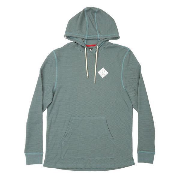 The Tippet Thermal Hood in Blue is a men’s hooded thermal long sleeve t-shirt with soft-hand waffle knit. Worn on it’s own or under a shell jacket for extra insulation, this thermal hoodie is constructed with a cotton/polyester blend to keep you warm. Featuring Salty Crew ‘Tippet’ patch detail, kangaroo pouch pocket and cotton draw cord. Made from 75% Cotton and 25% Polyester.