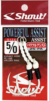 This is the power assist hook equipped with ‘KUDAKO HOOK’. It has high strength and moderate tension as the PE line is braided four times. It is suitable for one-assist jigging that the jig is linked with the sprit ring.