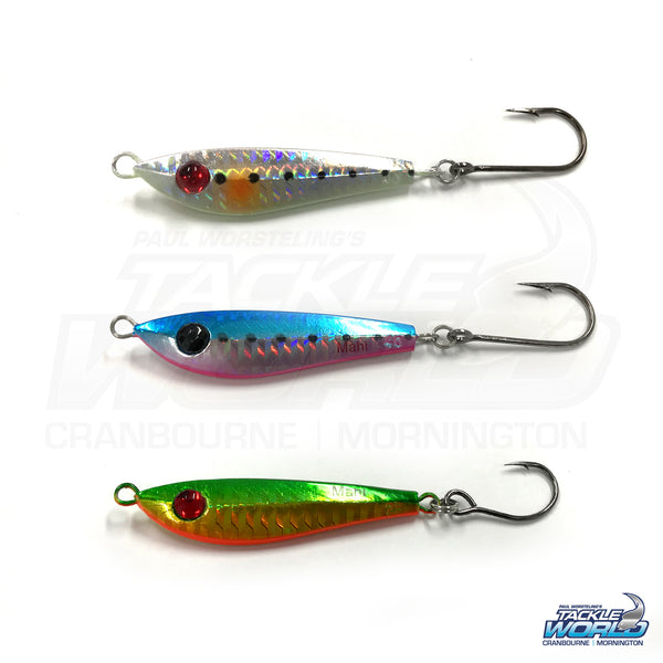From a 18g size to the larger sizes 40g and 60g, the âMahiâ lure is perfectly suited to target species from Trout and Redfin to Bream, Tailor and Salmon as well as Tuna and Kingfish.