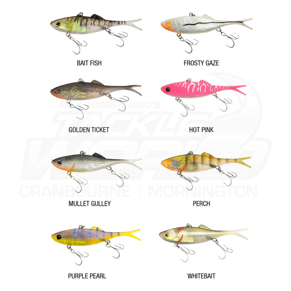 | Colour: | Bait Fish, Golden Ticket, Mullet Gulley, Purple Pearl, Frosty Gaze, Hot Pink, Perch, Whitebait, ORANGE CRUSH, GINGER NINJA, DISCO, JACK FLASH |