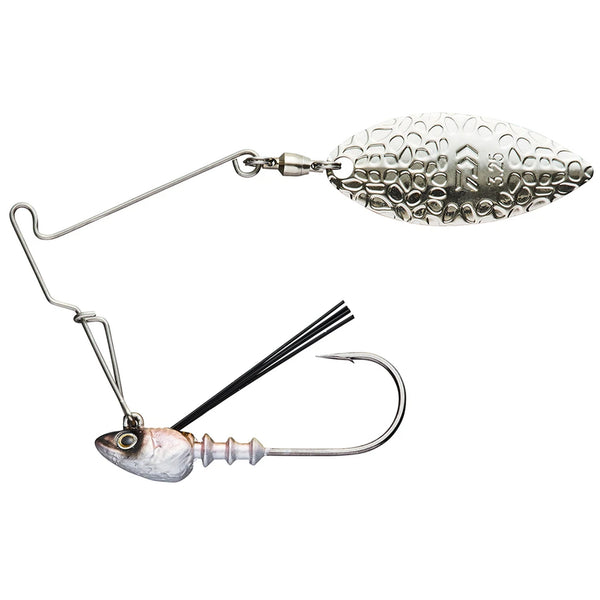 Say hello to the new must-have item for freshwater lure anglers, the new Daiwa Jig Spinner. Available in three different weights (5, 7, and 10 grams), the new Jig Spinner SS is built on a Daiwa SaqSas hook and features a painted 3D head, light fibre weedguard, an aggressive Barb BaitKeeper to hold your Bait Junkie soft plastics tight to the head, and premium swivels and willow leaf blades for maximum durability, performance and flash.