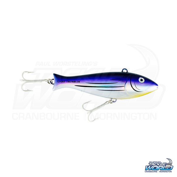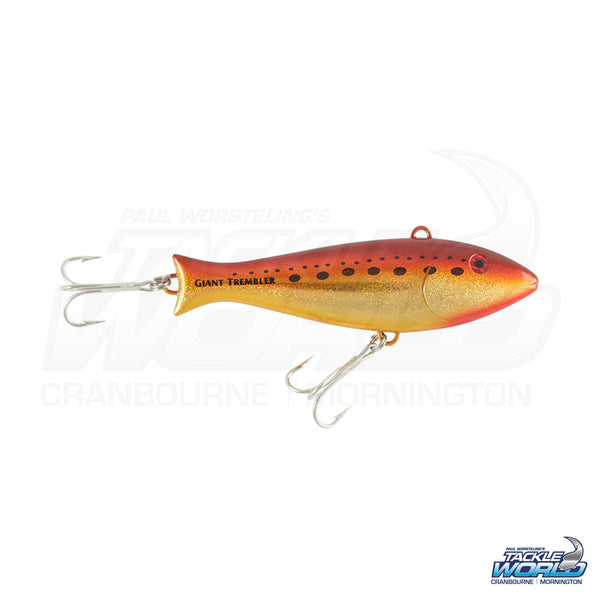The Halco Giant Trembler is a virtually indestructible, bibless minnow. This lure has a nose-weight that produces an extremely life-like swimming action, plus the loudest noise and has the strongest body vibrations of all the Halco lures. This lure can be cast, jigged or trolled, making it ideal for targeting a wide variety of sportfish.