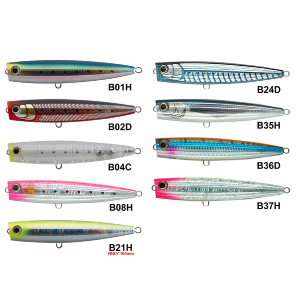 Pop Queen’s bullet like body shape and weight ballance allow long casts. Its body shape and the cup-like mouth work well to make a splash and twist action. A fast retrieve to split water is an effective method for active fish. Popping is also effective for negative mode target – this kind of action brings out a ‘reaction bite’ from pretatory fish.