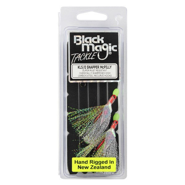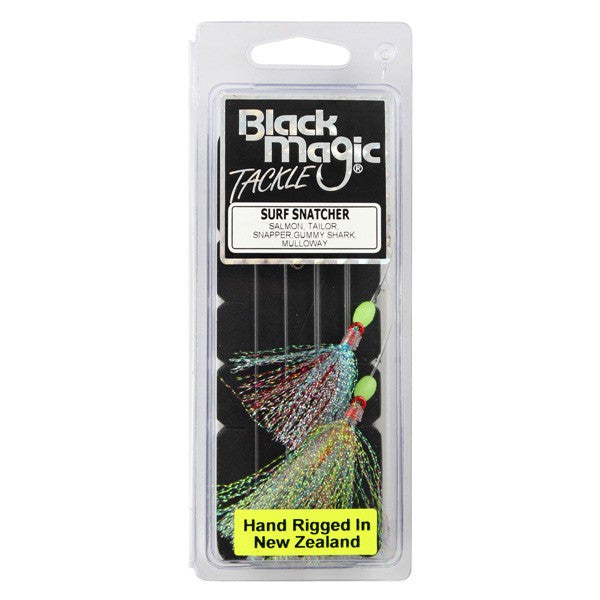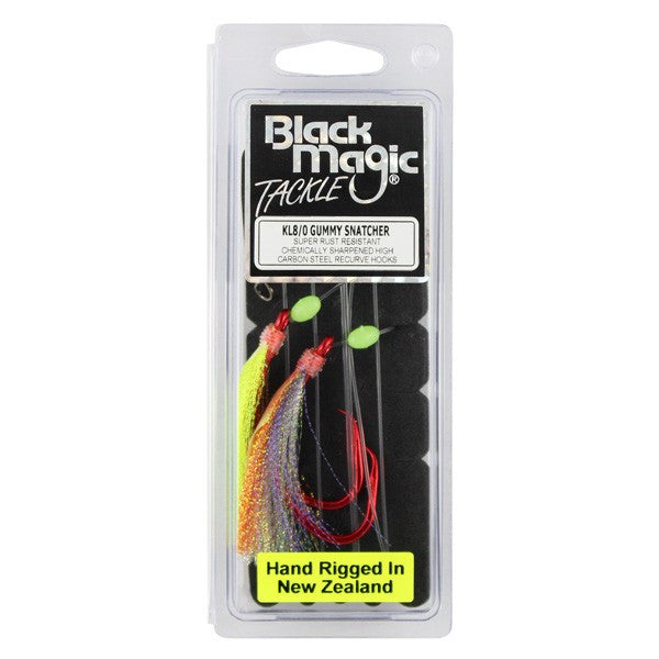 These flasher rigs are built around our famous high carbon steel, chemically sharpened KL recurve hooks -fish usually hook themselves in the corner of the mouth, allowing for easy hook removal a special super rust-resistant coating is used on these hooks to ensure a long life soft lumo beads make the rigs even more enticing in deep water or at night for extra appeal add a small triangle of bait (see picture) – avoid blocking the gape with bait attached you have everything working for you, a bait and a lure in one – kingfish, kahawai, trumpeter and trevally will often hit on the “drop” or “retrieve” ideal for fishing from the beach, rocks, wharf or boat two hook rigs are IGFA legal for tournament use or record claims avoid striking when you feel a bite, just gently lift your rod tip as the fish takes Black Magic flies and flasher rigs are tied, assembled and packaged in New Zealand, incorporating the best components ensuring a quality product so you get the best results these flasher rigs are very effective with all fish species – so please release a few.