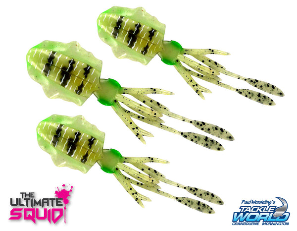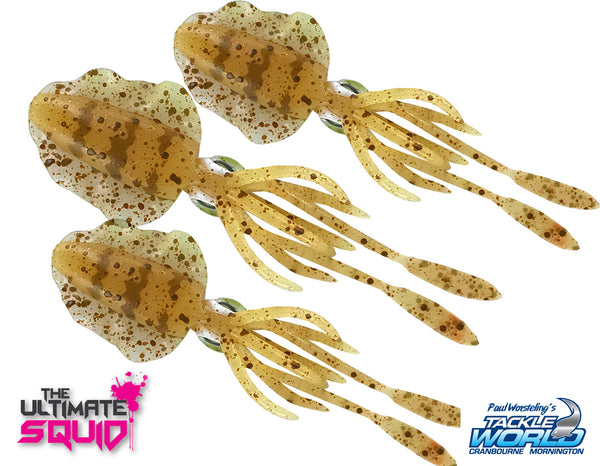 Designed to be the most realistic Squid ever made. The wings will mesmerize you with the most realistic roll and swim action just like a real squid. With custom 3D squid eyes, custom scent, contracting tentacles and extended candles that flutter with any movement. Add the ULTIMATE SQUID to a drop rig, use as an addition to a jig or just add a jig head. The options are endless. The ULTIMATE SQUID, we believe, is one of the most adaptable and realistic squid lures every made.