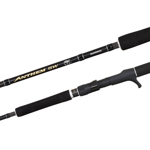The Anthem SW series is a dedicated sportfishing series of rods that feature 12 purpose-built models for Australian conditions with 2 overhead, 5 spin, 2 stick bait and 3 jigging models. Built tough to handle any unforgiving saltwater species, Shimano’s durable and lightweight TC4 blank construction has been used, which ensures powerful performance when both casting and fighting a fish once hooked. Premium Fuji K Faz Lite guides have been fitted and the grip section features specially designed custom shaped EVA moulded grips for comfort and added grip. These rods are suited to be fished right along Australia’s saltwater coastline, whether it be GT’s on the northern reefs or southern bluefin busting up bait.