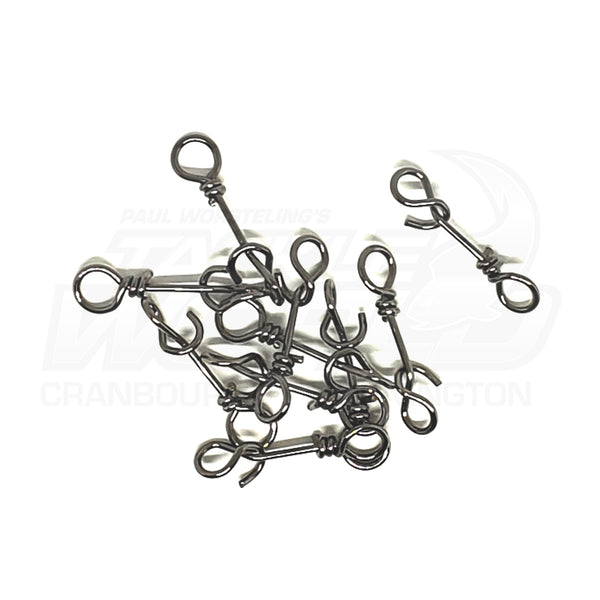 Quickly put on or take off lures or squid jigs with these clips. A simple rotation of the lure around the clip is all that is needed to quickly change to another lure or colour and get back into the fishing action.